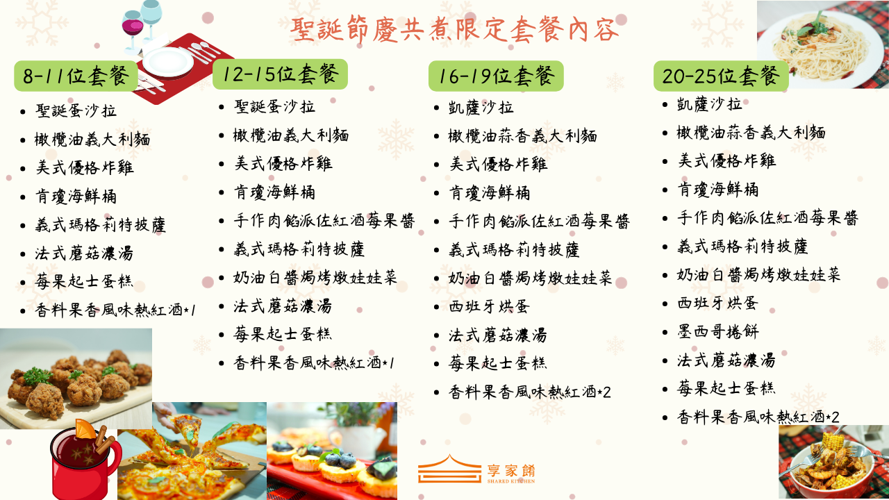 *期間限定-聖誕節慶套餐方案10/24-12/31下廚聚會三步驟(8以上預約-含8位)