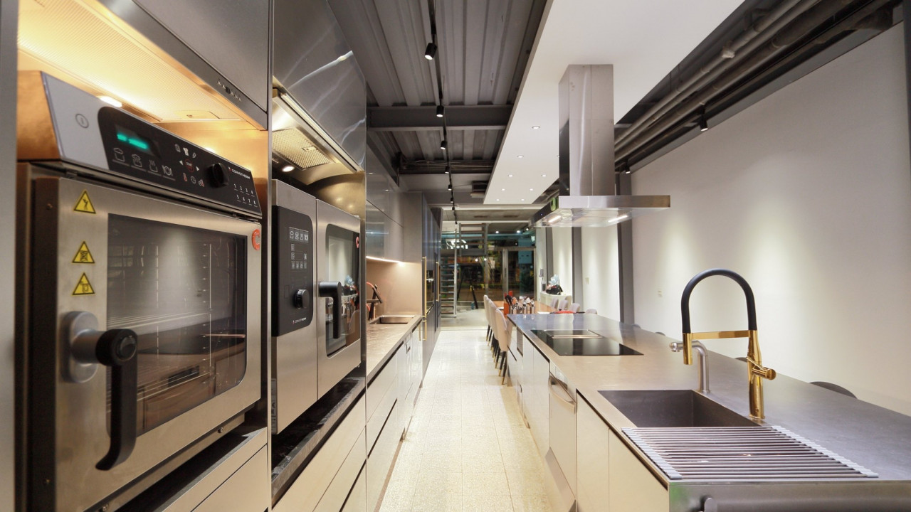 位於捷運中山站及台北車站交叉口,高質感共享廚房「享家餚」,在料理的平台上是採用大中島式的304不銹鋼材質,結合頂級五星級飯店專用德國Convotherm蒸烤箱,義大利SIMAG製冰機及HOBART及WINTERHALTER快速洗碗機,讓私廚在料理的過程中省時又有效率,現場也提供來用餐的客人免費的氣泡水及美式咖啡,還有許多紅白酒及啤酒可以選擇,提升客人在用餐 時的體驗與感受,讓「享家餚」高質感的場地與高超廚藝雙結合一同打造屬於您私廚品牌。