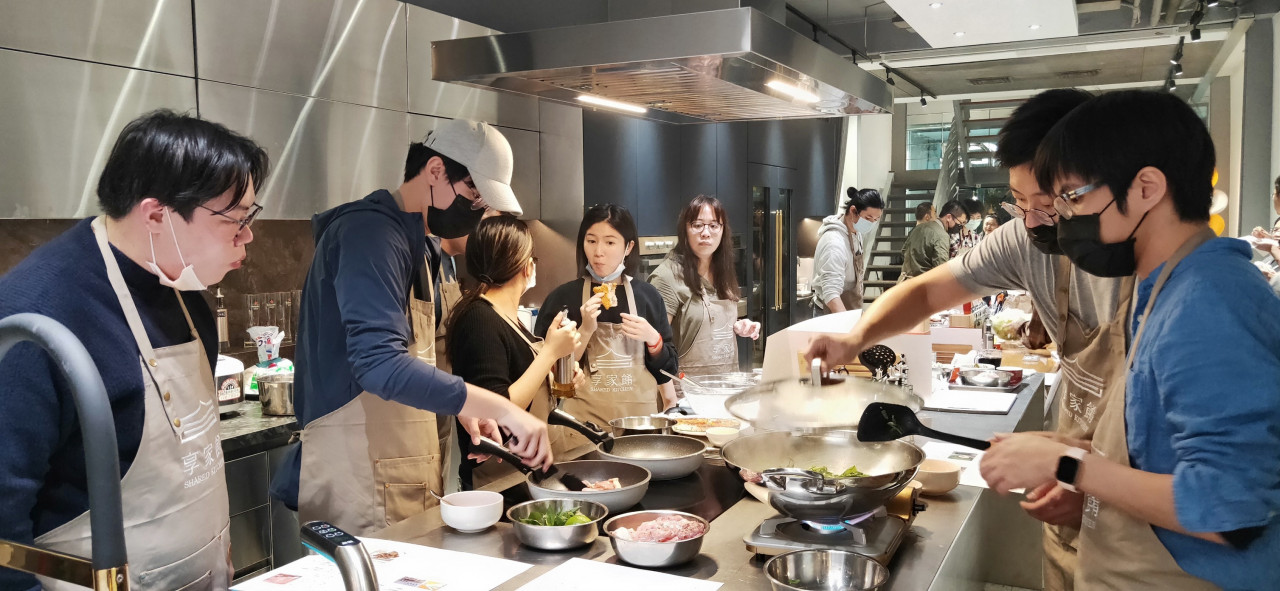 享家餚位於台北車站與中山捷運站交叉口,在共享廚房透過一起下廚活動,開啟團隊合作建立彼此的默契與信任關係,在下廚過程中,可以彰顯每個人在團隊中的角色,無關下廚的能力,而是個人特質,透過活動流程的設計不需要擔心做出來的食物是否美味,享家餚提供一整套簡單易懂的食譜與食材,協助分組與分工,從洗菜、切菜到料理,烹煮的過程中,若有任何的問題,享家餚也有小幫手在場協助,不需要擔心。